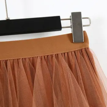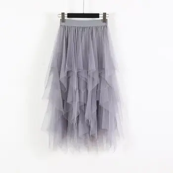 Elastic High Waist Skirts Women Solid Irregular Mesh Tulle Skirts Elegant A-Line Long Skirt Ladies Summer Autumn Skirt