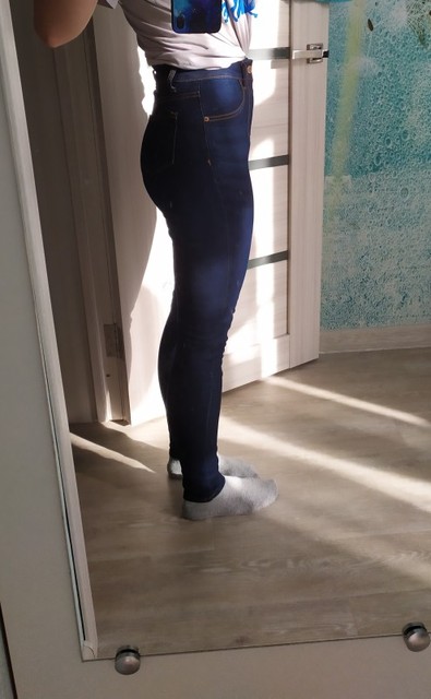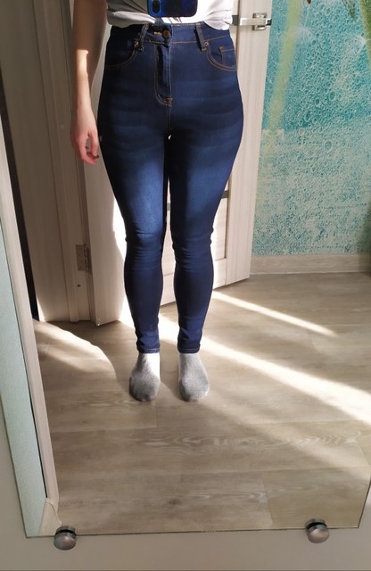 джинсы идеальные, ткань хорошая, плотная, не как джеггинсы, даже на джинсы похожа)) сели идеально, вокруг талии как на меня сшиты были, цвет, как заказывала, шли до Сочи долго, больше месяца