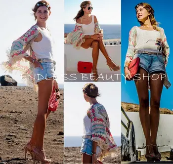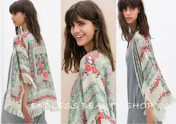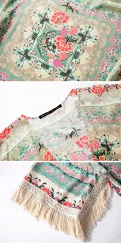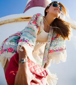 New Fashion Women Boho Fringe Floral Kimono Cardigan Tassels Beach Cover Up Cape Jacket