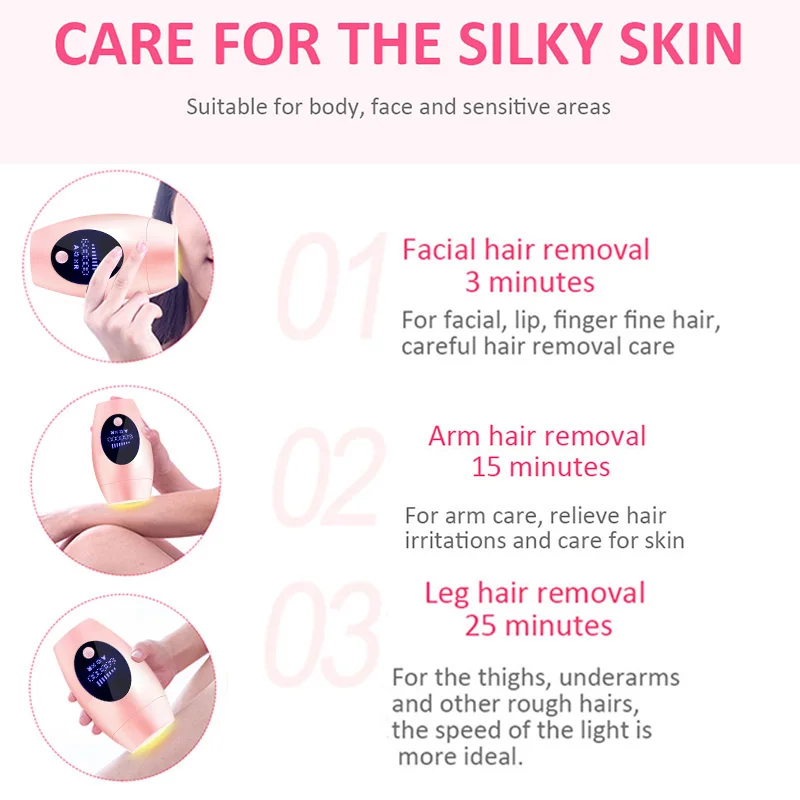 - Double Flash Molding—perfectly attach onto skin with comfortable use,and won'tcause burden for skin.Automatic continues flash is suitable for larger area depilation.3.0cm big irradiation area save time and effort.
